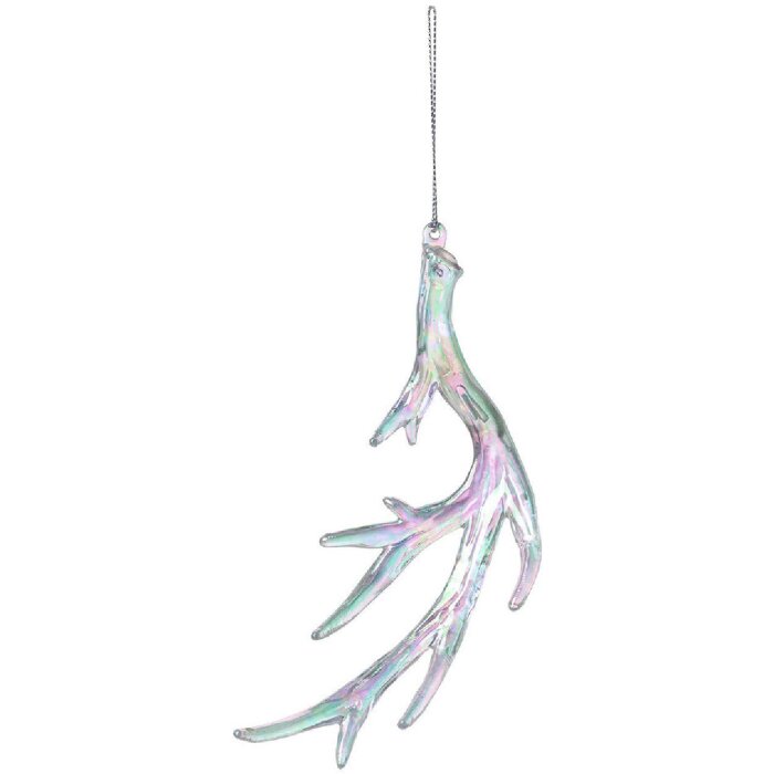 Clayre & Eef dekorácia prívesok parohy, 18x2x8 cm, plast, strieborná farba, dúhová, ideálne pre vianočné dekorácie vo vidieckom štýle, zimný pôvab pre váš domov