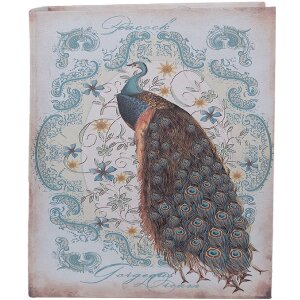Clayre & Eef sada 3 úložných boxov, modrozelená farba, drevo, rozmery: 27x22x7, 22x17x6, 17x12x4 cm, retro a vintage štýl, motív páva