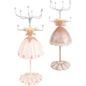 Clayre & Eef 65876 Stojan na šperky béžový Ø 7x19 cm Romantický dizajn Polyresin