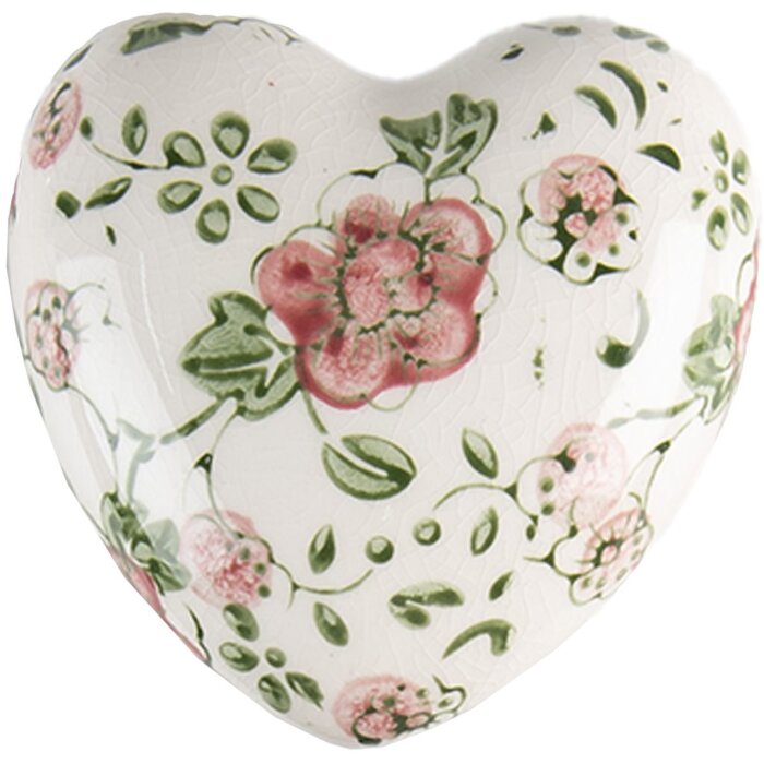 Clayre & Eef dekorácia srdce, 8x8x4 cm, z keramiky, ružová/béžová, starožitný vzhľad, kvetinový vzor, ideálna ako dekorácia alebo darček, dodá vášmu domovu romantické čaro