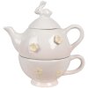 Clayre & Eef 6CE1698 Čajová súprava, biela, 500 ml a 275 ml, veľkosti: 18x12x13 cm / Ø 15x11x7 cm