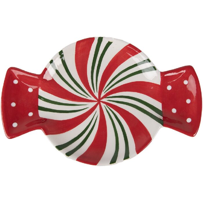 Clayre & Eef 6CE1848S Keramický tanier červený biely 22x14x2 cm