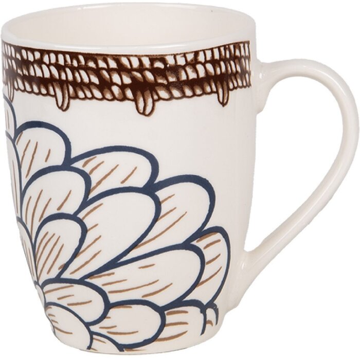 Hrnček od Clayre & Eef, 12x8x10 cm, 300 ml, z keramiky, biely s hnedými akcentmi, boho štýl, ideálny na horúce nápoje, robustný a štýlový