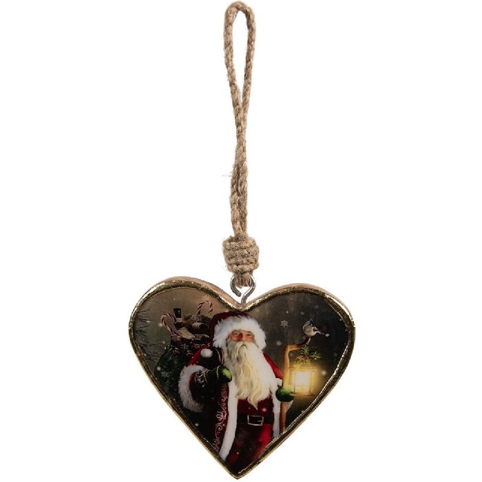 Clayre & Eef prívesok srdce z dreva, 13x2x13 cm, červený, v tvare srdca, vianočná dekorácia na stromček, dvere, okno