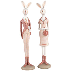 Clayre & Eef 6PR5245 Dekoratívny králik bielo-ružový 4x4x22 cm Country Style