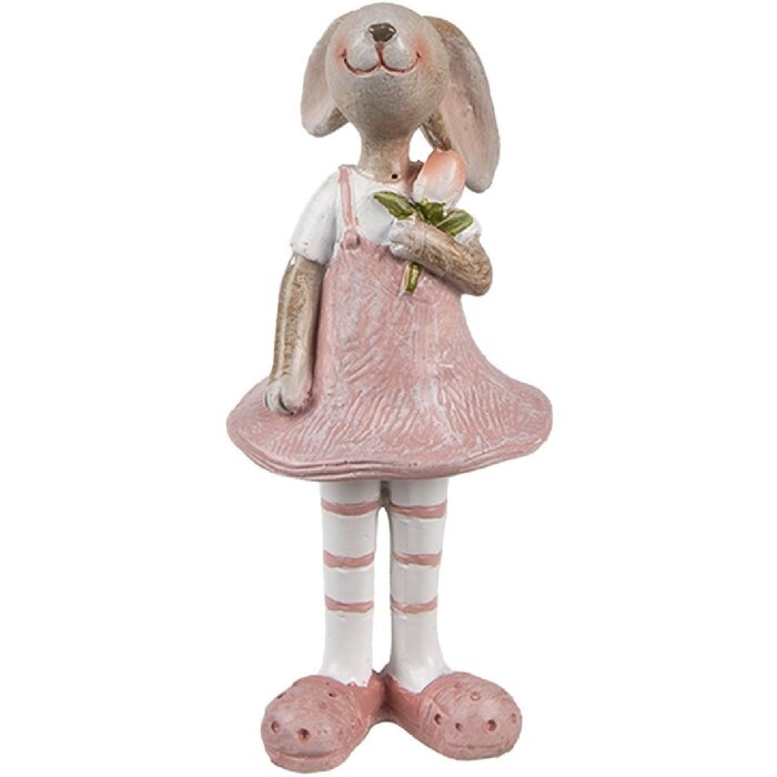 Dekoratívny králik od Clayre & Eef, béžovo-ružový, detailný dizajn, vidiecky štýl, vyrobený z polyresinu, 5x5x11 cm, ideálny na jar a Veľkú noc