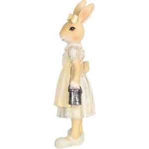 Dekoratívny zajac Clayre & Eef, polyresin, vidiecky štýl, béžovo-žltý, 8x5x15 cm, bohato zdobený košíkom a zásterkou, ideálna jarná a veľkonočná dekorácia