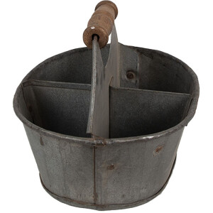 Clayre & Eef kovová nádoba s priehradkami, okrúhla vo vidieckom štýle, s rukoväťou, železo v sivej farbe, 20x18x16 cm