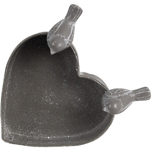 Dekoratívny držiak na rastliny Clayre & Eef, železo, sivá farba, rozmery 14x12x7 cm, elegantný dizajn srdca s vtáčikmi, stabilný stojan