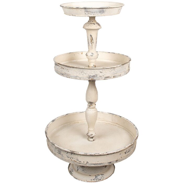 Clayre & Eef etáž, 3-stupňová, Ø 42x75 cm, robustné železo, starožitný štýl, použitý vzhľad, béžová farba, univerzálna na dekoráciu alebo servírovanie