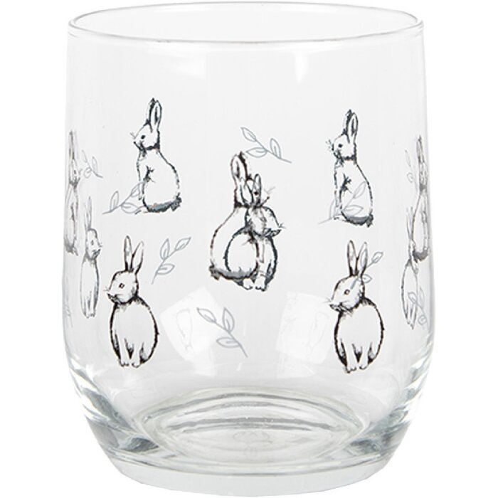 Pohár na pitie Clayre & Eef, motív králika, Ø 8x9 cm, 300 ml, vysokokvalitné číre sklo, očarujúci dizajn vo vidieckom štýle, ideálne na vodu, džús a iné