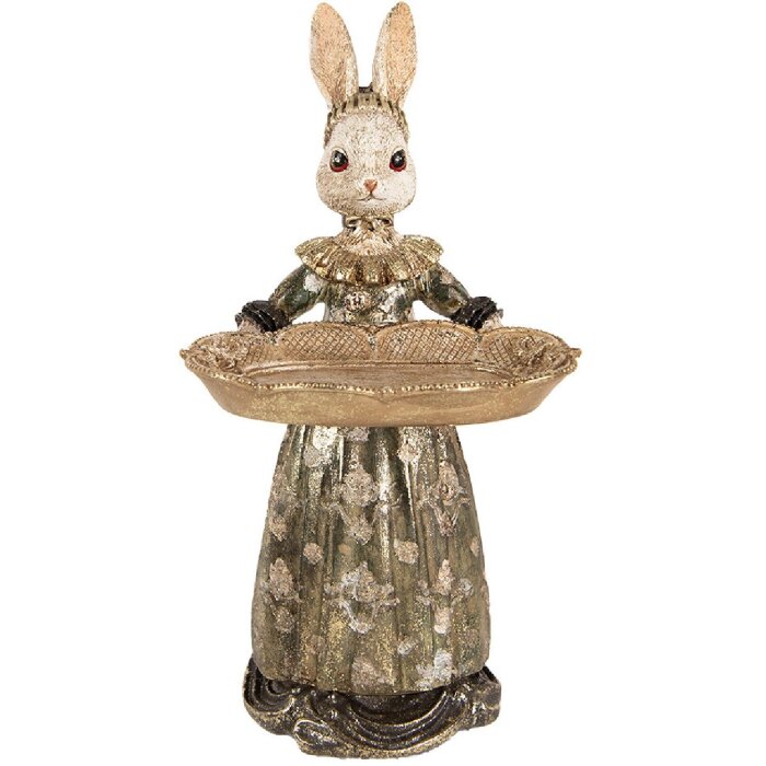 Clayre & Eef dekorácia Králik s miskou béžová zelená zlatá 16x15x29 cm