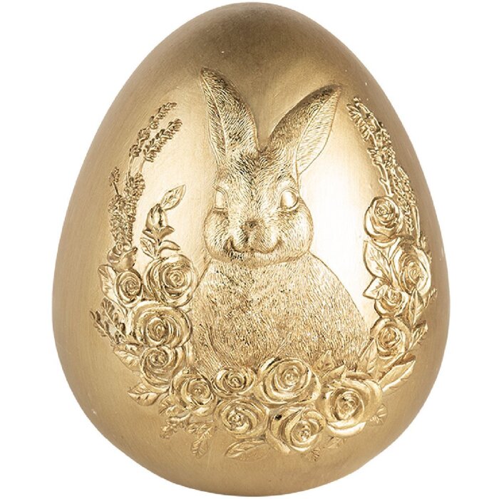 Clayre & Eef Dekoračné vajíčko zlaté Ø 17x21 cm so zajačikom Veľkonočná dekorácia