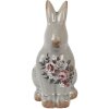 Clayre & Eef dekoratívny králik, keramika, vidiecky štýl, sivá a ružová farba, kvetinový dizajn, vintage vzhľad, 13x10x21 cm, ideálna jarná a veľkonočná dekorácia