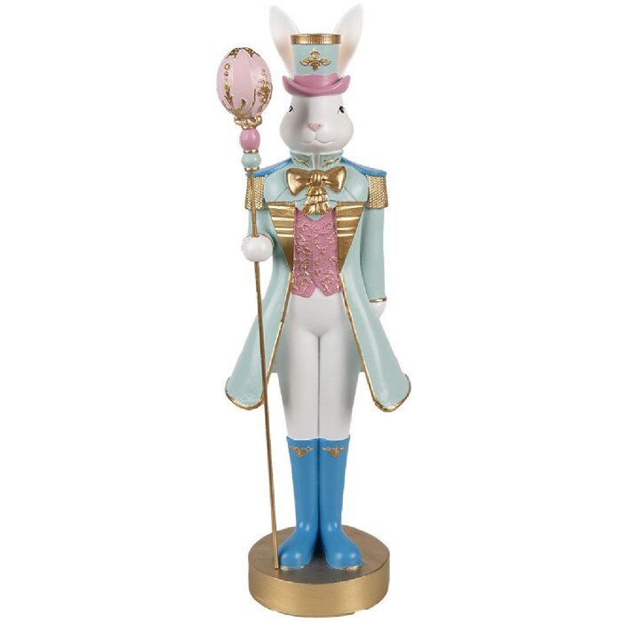 Dekoratívny králik Clayre & Eef, štýl vidieckeho domu, polyresin, bielo-zeleno-modro-zlatý, 10x9x31 cm, ideálny na Veľkú noc alebo ako štýlový bytový doplnok, nostalgický šarm
