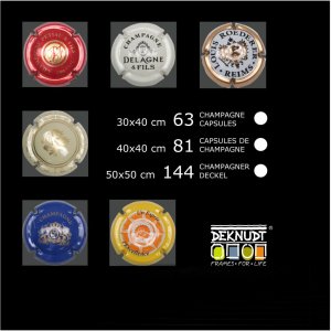 Galerijný rám na 144 kapsúl šampanského, na zavesenie, veľkosť: 50x50 cm