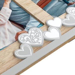 Drevený portrétny rám ZEP s aplikáciou srdca, rám so stojanom, na jednu alebo dve fotografie 10x15 cm