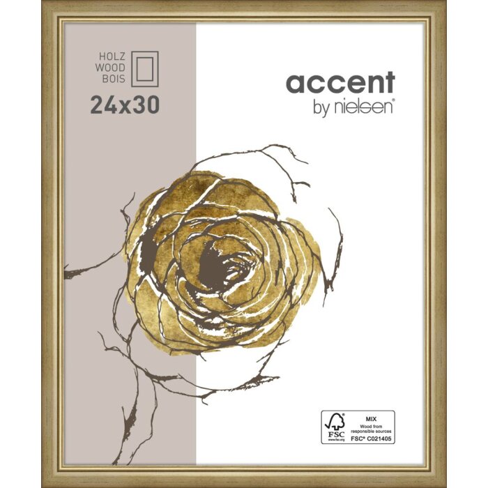 Prémiový drevený rám od spoločnosti Nielsen, drevo s certifikátom FSC, úzka drevená lišta s drážkami, rám obrazu 15x20 cm