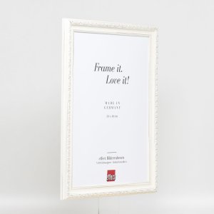 Efektný rám z masívneho dreva v barokovom vzhľade, bielo lakovaný alebo potiahnutý fóliou, profil s drážkami