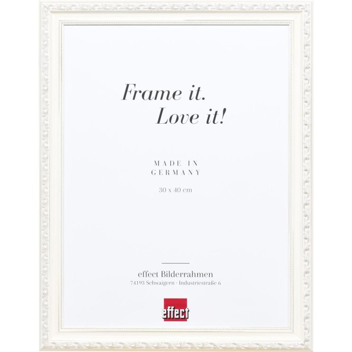 Efektný rám z masívneho dreva v barokovom vzhľade, bielo lakovaný alebo potiahnutý fóliou, profil s drážkami