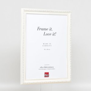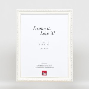 Efektný rám z masívneho dreva v barokovom vzhľade, bielo lakovaný alebo potiahnutý fóliou, profil s drážkami