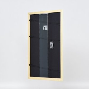 Rám z masívneho dreva, stredne široký profil lamiel s drážkami, lakovaný s otvorenými pórmi