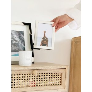 Kovový portrétny rám Deknudt, lesklá strieborná a široká lišta, čierny zamatový chrbát so stojanom