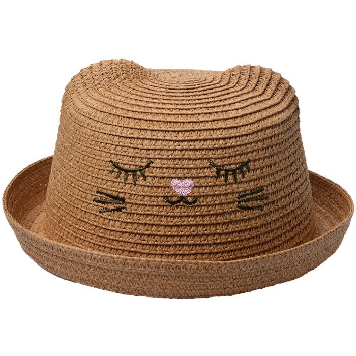 Prírodný slamený materiál, dizajn s výšivkou tváre, jedna veľkosť pre deti, flexibilný šilt, ľahký a priedušný