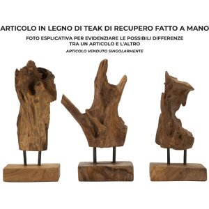 Unikátny kus z recyklovaného teakového dreva, ručne vyrobený z jedného kusu, jednotlivé zrná, hnedá farba, 20x11x34 cm, stabilný drevený podstavec