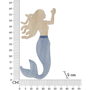 Nástenný panel s 3D morskou pannou, 30,5x2x60 cm, kov a MDF, horná časť tela prírodnej farby, modrý rybí chvost, morský vzhľad, ľahký a dekoratívny