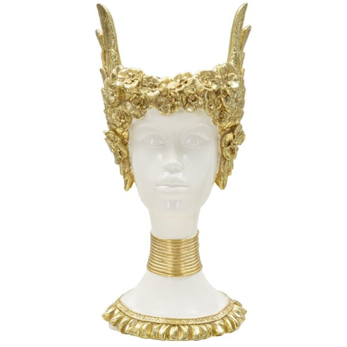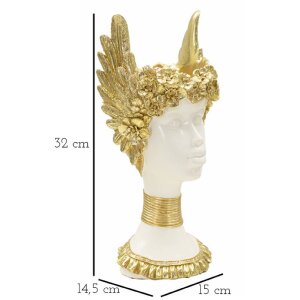 Socha Atény z polyresinu, 15x14,5x32 cm, biela so zlatými detailmi, okrídlená koruna s kvetinovými prvkami, klasický dizajn s moderným nádychom od Mauro Ferretti
