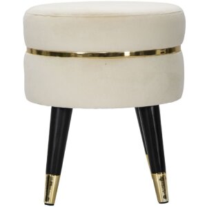 Stolička Ø 35x40,5 cm, borovicové drevo, pena, kov, polyester, krémový zamatový poťah so zlatým ozdobným pásom, čierne nohy, kompaktná, očarujúca, elegantná