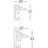 Plastový rám s umeleckým sklom, úzky a dovnútra sklonený profil stola, šírka lišty: 1,0 cm