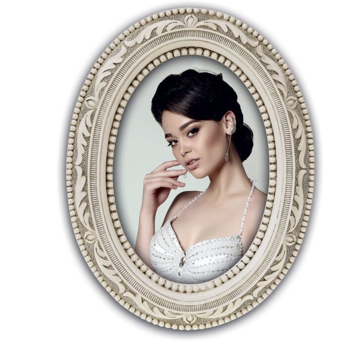 Elegantný barokový fotorámik zo syntetickej živice, oválny, so stojanom, v 2 veľkostiach (10x15 cm, 13x18 cm) na nostalgickú prezentáciu fotografií