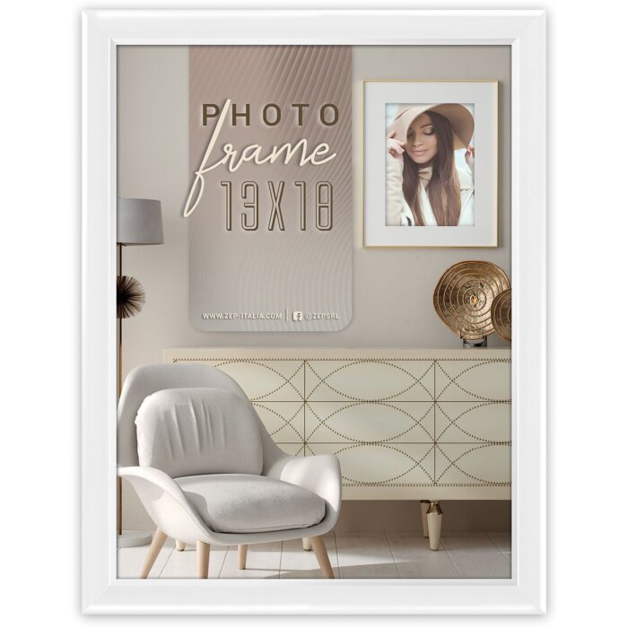 Drevený rám ZEP Aosta v bielej farbe, vysokokvalitné drevo s lesklým povrchom, elegantný profil, ideálny na fotografie 30x40 cm, len na montáž na stenu, vhodný na výšku aj na šírku