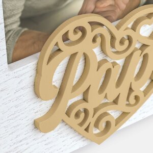Drevený rám na fotografie ZEP Oscar, 10x15 cm, sivý, dizajn srdca, nápis "Papa", stojanový rám