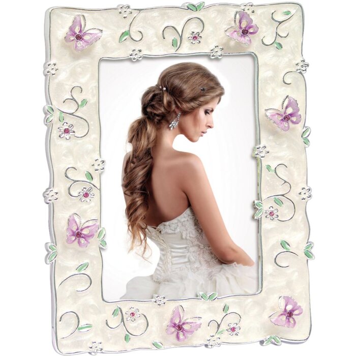 Kovový rám s perleťovým vzhľadom, so stojanom, na jednu fotografiu 7x8 cm alebo 10x15 cm, na postavenie na výšku