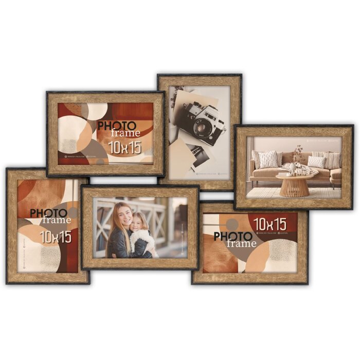 ZEP MDF fotogaléria Lubecca, 52x32 cm, 6 fotografií 10x15 cm, MDF rám, čierno-hnedý, ľahko zavesiteľný na výšku aj na šírku
