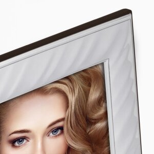 Kovový portrétny rám ZEP, rám s dreveným chrbtom a lesklým strieborným povrchom, vyrobený v Taliansku